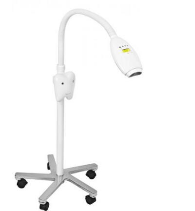 フロアスタンドデザイン、ベースの下に移動とロック可能なキャスターが5個有り、精巧な外観設計、狭く空間でも快適に使えます。そして、光源には青色LED冷光を採用し発熱が少なく、患者さんにやさしいホワイトニングを実現します。