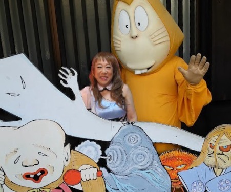 ゲゲゲの鬼太郎ロードでネズミ男と撮りました