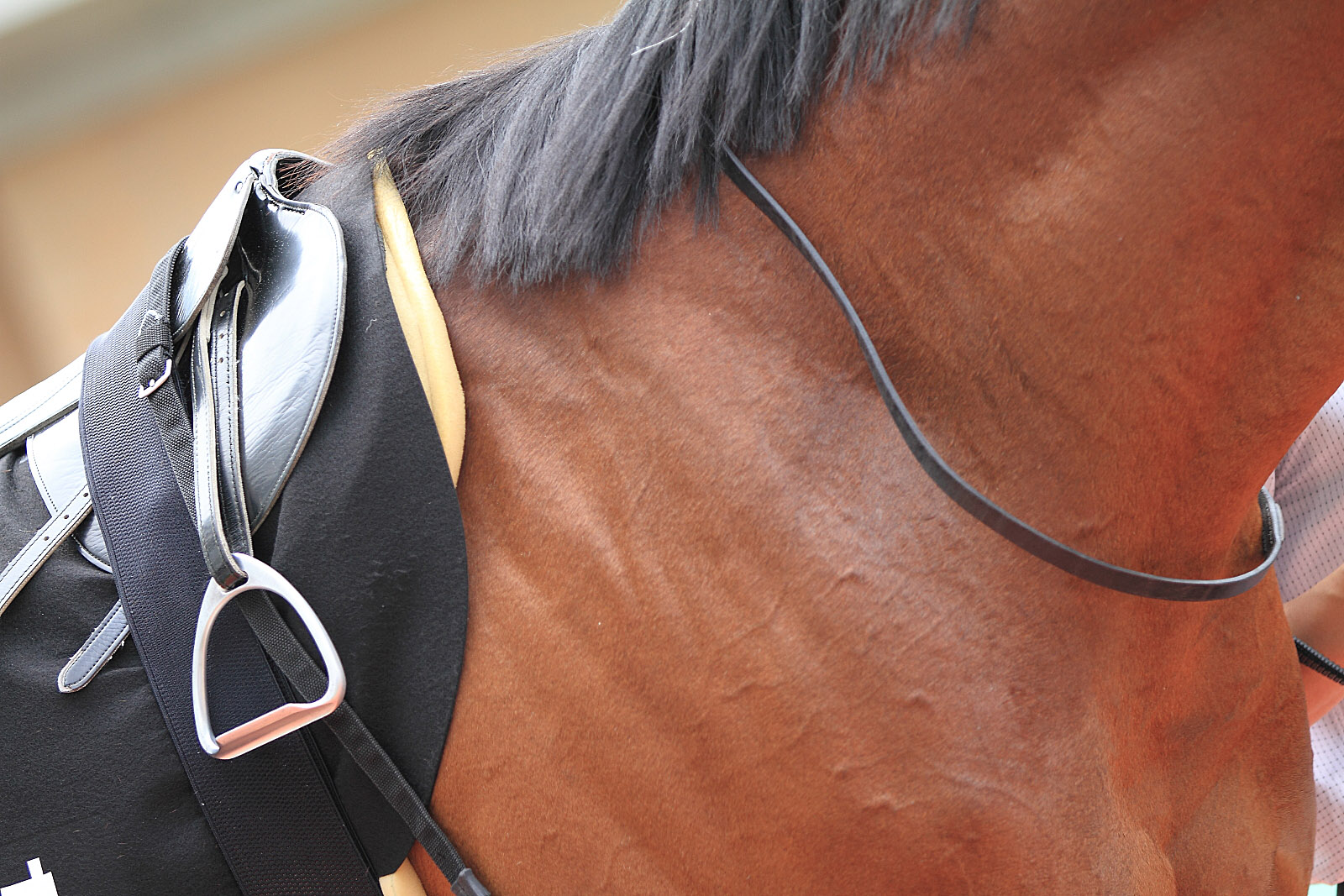 競走馬をまじかで見るとその背の高さに驚きます。また毛並みの艶や浮き上がる血管
