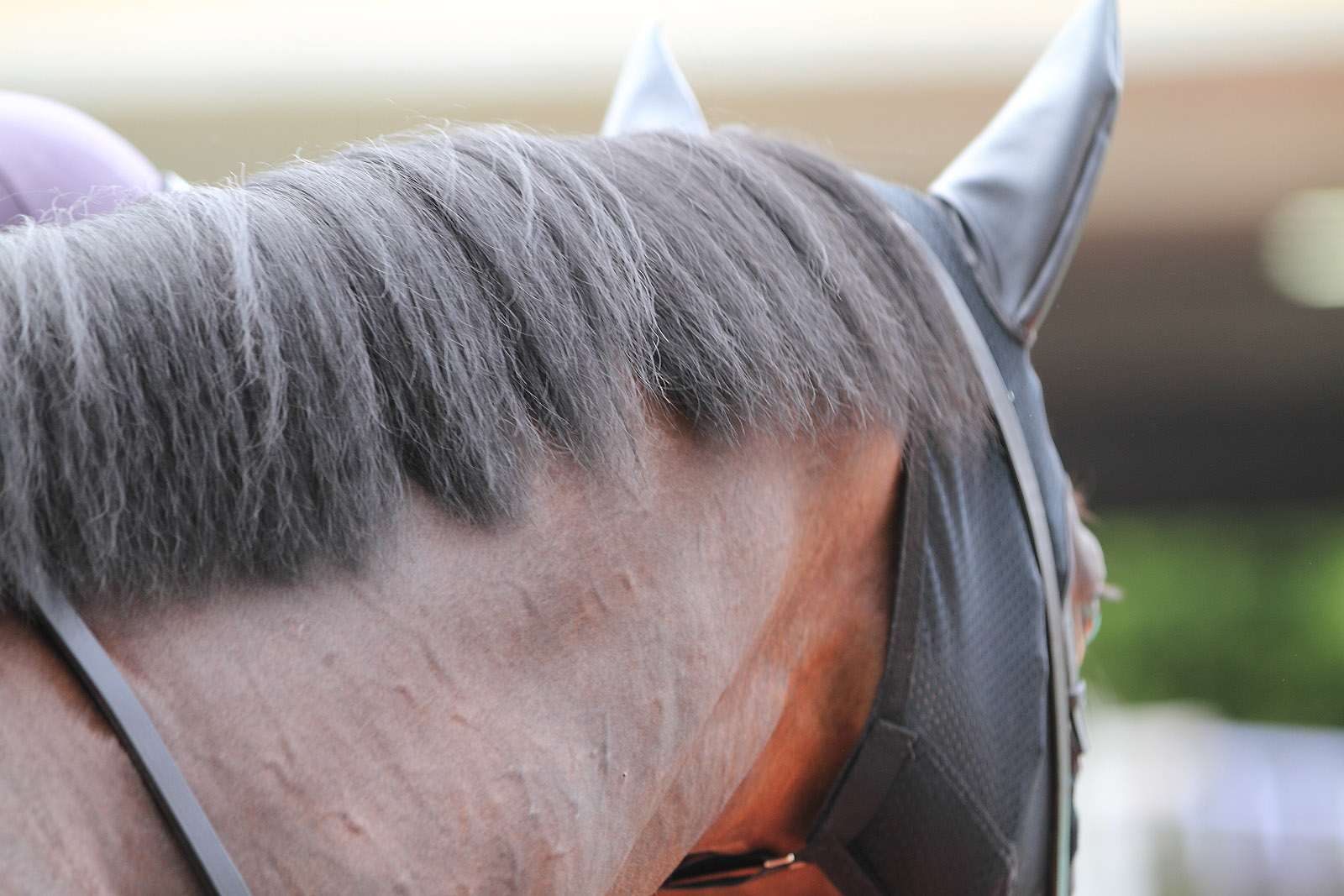 競走馬をまじかで見るとその背の高さに驚きます。また毛並みの艶や浮き上がる血管