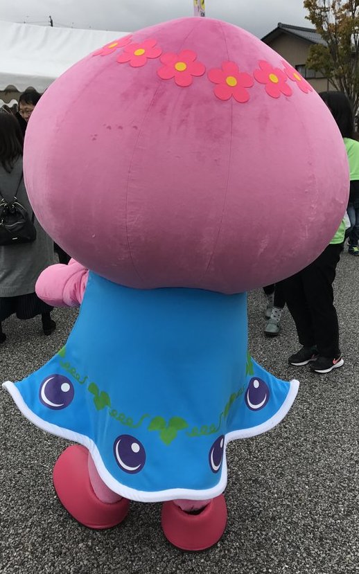 | 赤磐市の代表フルーツである桃とぶどうをモチーフにデザインされ、ワンピースの青は、晴れの国岡山のさわやかな青空。桃の花輪飾りと立体的なぶどうの粒がポイントの明るくて元気な女の子。 赤磐市を舞台とした映画「種まく旅人〜夢のつぎ木〜」にも出演 |