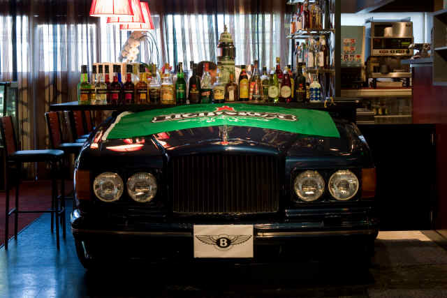 お店の一番奥のバーエリアには、本物のベントレーを使って作ったバーカウンターでがあり、