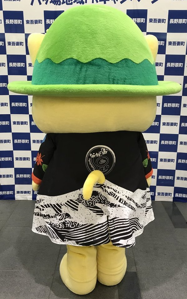 2017年1月誕生、長野原町マスコットキャラクター。 猫が町内の川原湯温泉で開催される奇祭「湯かけ祭り」の参加者のようにふんどし姿の格好をしている。 頭には浅間山をイメージした緑色の帽子をかぶり、その上には特産のトウモロコシやキャベツ、トマト、日本酒が載っている。 八ッ場ダムと吾妻峡、川原湯温泉をPRするため県内外で活躍する。 |