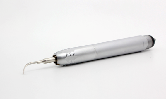 エアースケーラーとは、歯根面に付着した歯石やバイオフィルムなどを、空気圧で振動させて除去する歯科医療用機器です。原理は圧窄空気で発生するエネルギーを回転力に変えて、これをハンドピース内で振動に変換することです。機種によって、さまざまな方法で振動に変換しています。