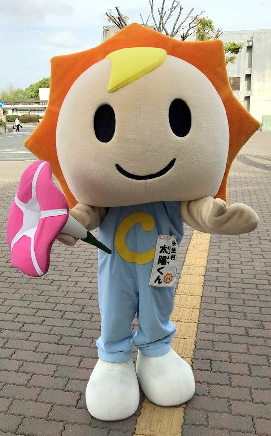 ふり注ぐ「太陽」と、九十九里浜の「青い海」をモチーフとしており、手に村の花の「ハマヒルガオ」を持ち、「自然あふれる緑豊かな村」をイメージ。
