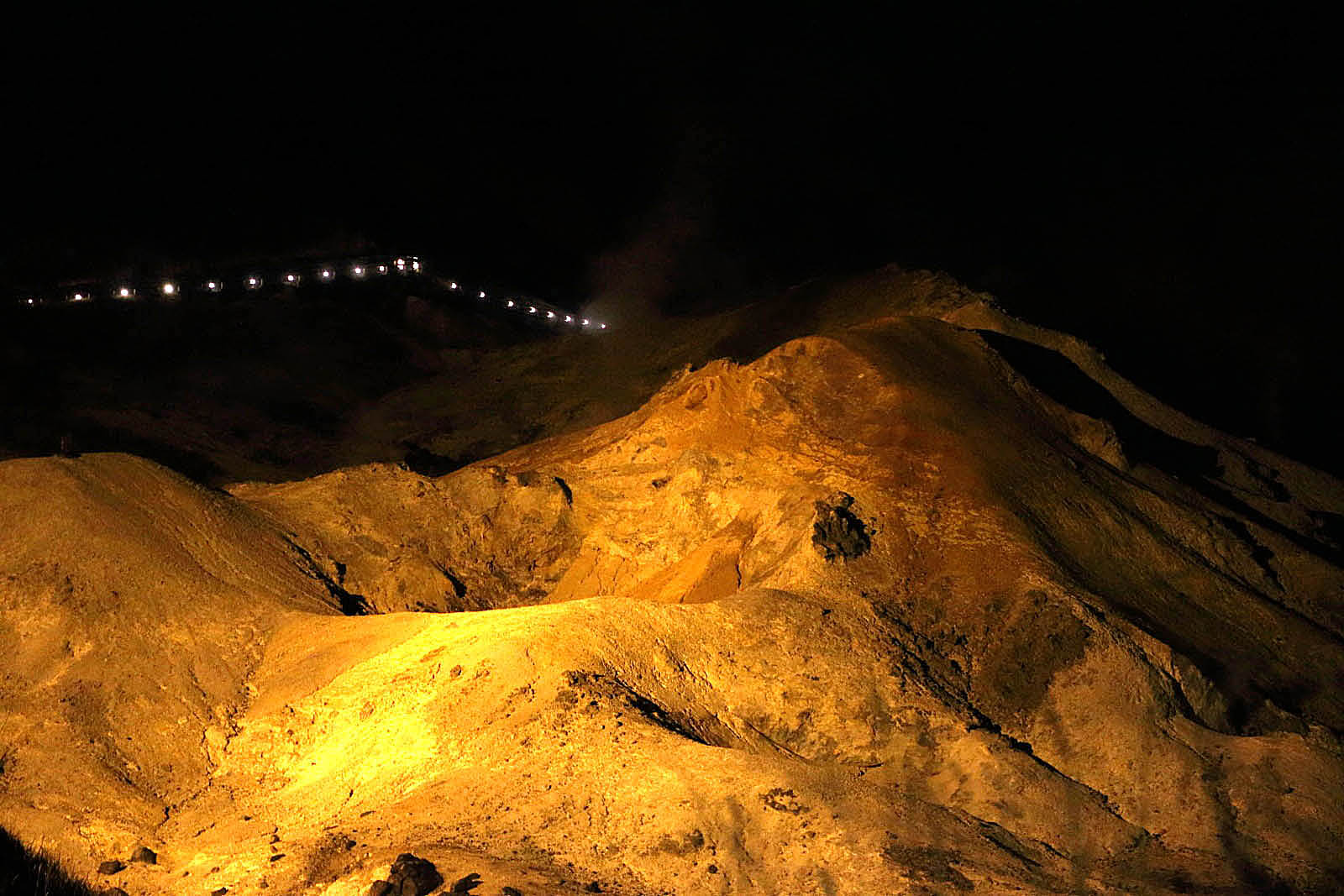 登別温泉地獄谷 夜間ライトアップ時にて撮影(ナイトツアー参加)
