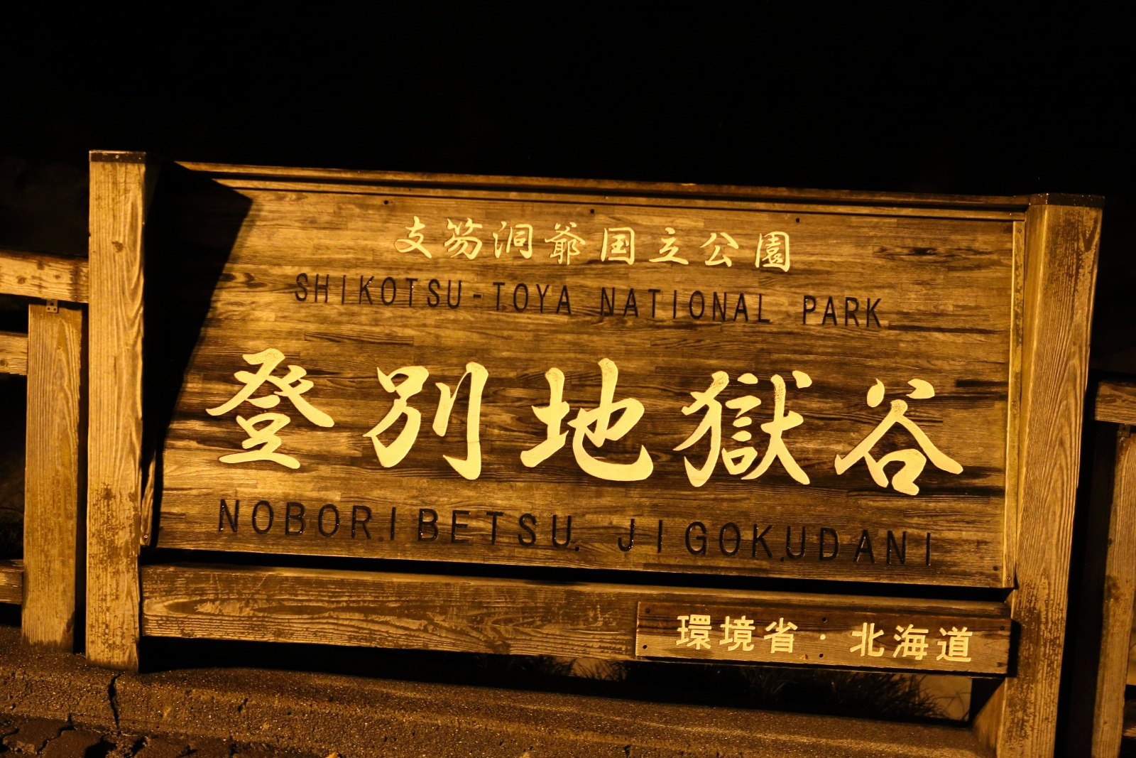 登別温泉地獄谷 夜間ライトアップ時にて撮影(ナイトツアー参加)