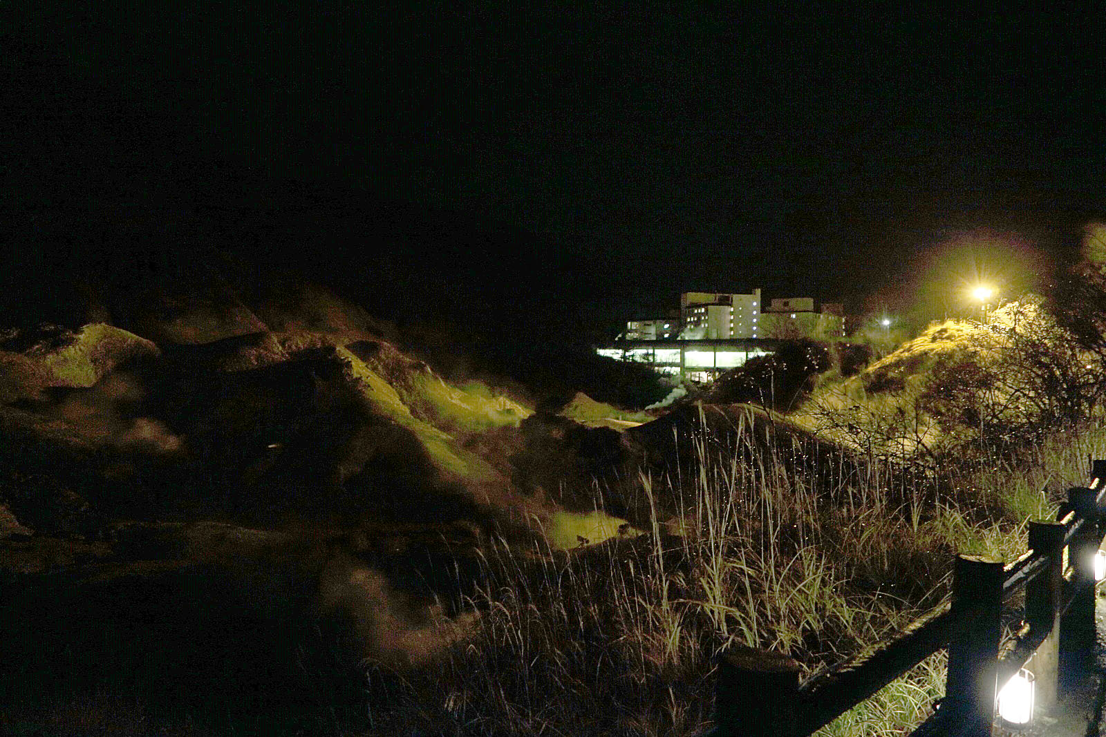 登別温泉地獄谷 夜間ライトアップ時にて撮影(ナイトツアー参加)