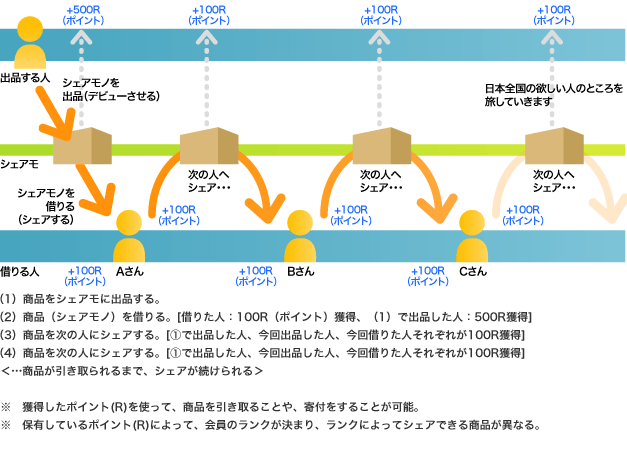 その際出品したひとと借りた人双方にポイントがつきます。