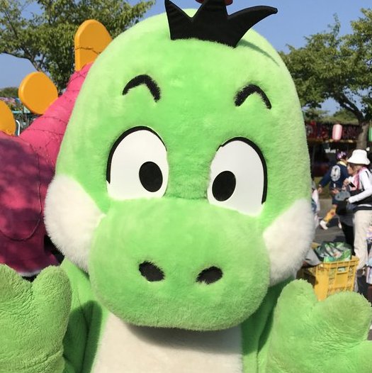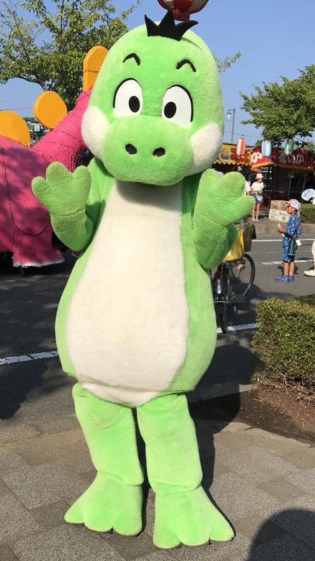 毎年8月に開催される「まい・あみ・まつり」のキャラクターとして2009年に誕生。まつりに登場する恐竜型の山車「アミゴン」の子。平和への祈りを込めて「ピース」と名付けられた。 アミゴンは2018年で引退するが、ピースとさくらは続投の可能性が高い |