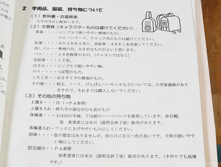 私も実際に学校説明会に行ってみて、入学までに必要なグッズを見てびっくりです。