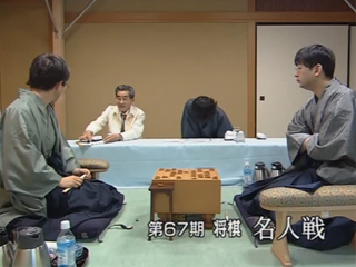 羽生名人が自らの手番を考慮中、この男は白い扇子とペンを取り出し、