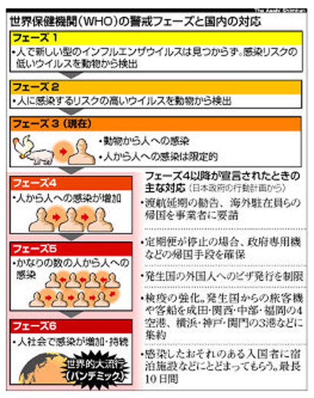 「Phase3」でしたが 豚と接してないヒトの感染事例が確認され世界保健機関(WHO)が