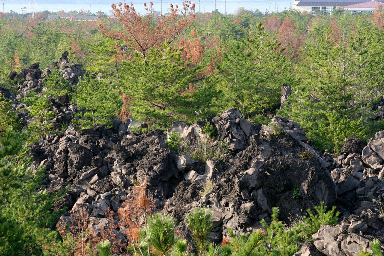 植物も群生しています。溶岩や火山灰が堆積し高台が出来るほどに・・。