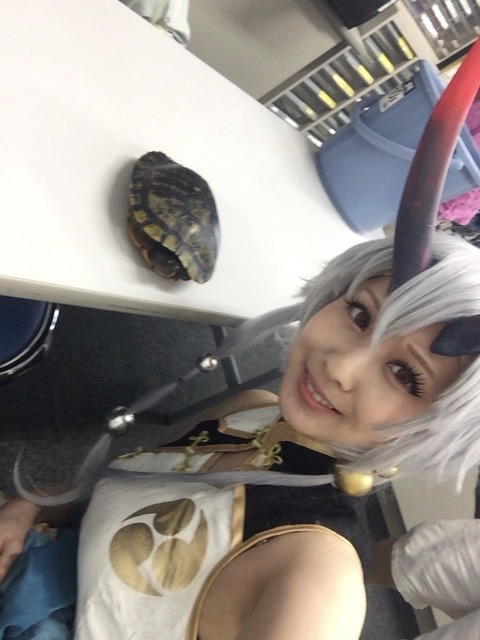 「亀が見つかりました、まゆみんさん来てください」と、事務局からお呼び出しが(笑) コスプレのまま駆けつけると