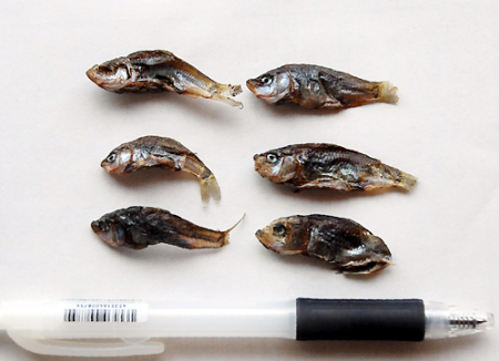 みられる小魚(体長3〜5cm)の死骸が散らばっているのに気付いた。