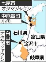 石川県内では4日に七尾市の駐車場で、6日に白山市の民家周辺で大量のオタマジャクシが見つかっている。