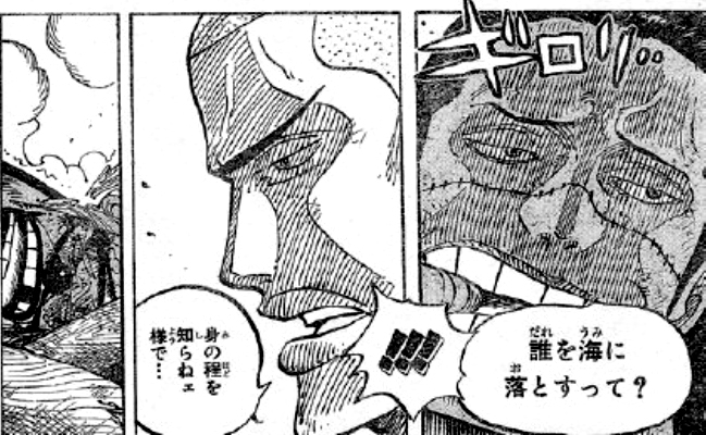 ジンベエは砲撃をかわし、3人を甲板へ打ち上げる為に海に潜り、魚人柔術 水心で水を掴んで海流一本背負いで3人の乗る扉を空高く水柱で押し上げ、見事甲板へ送り届けました!クロコダイルとMr.1なら楽々船を奪えそうです!バギーは着地に失敗!アルビダやバギー海賊団は凧の帯まで来て引き返していましたが バギーと再開する可能性が高くなってきましたね!