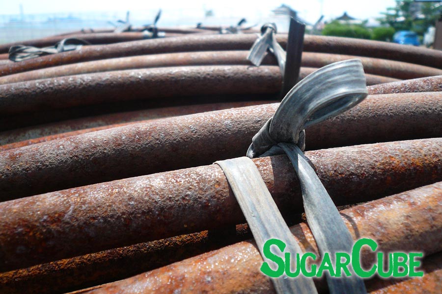 うちの近所に畑があるところがあって、ビニールハウスがあったところにまとめて置いてあった。おそらくビニールハウスと形成していたパーツたち。年季が入っていてかなり錆びている。