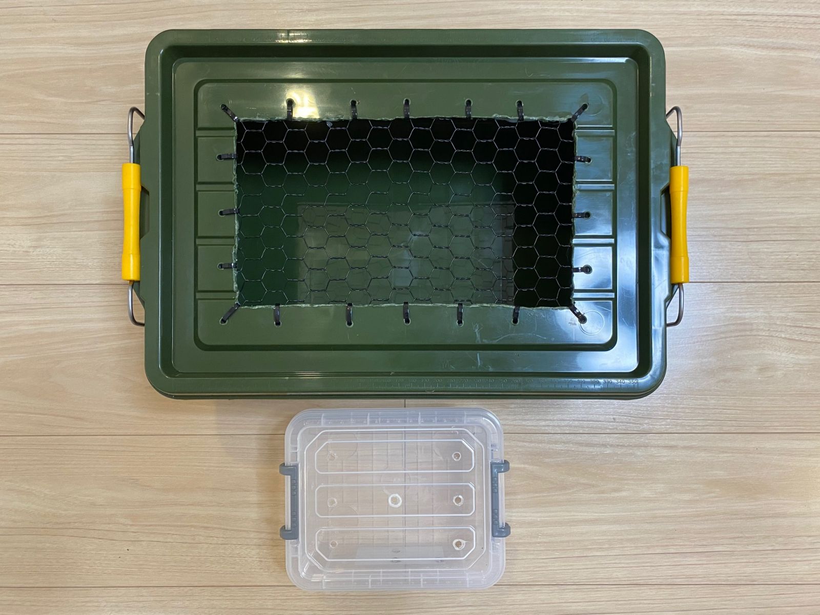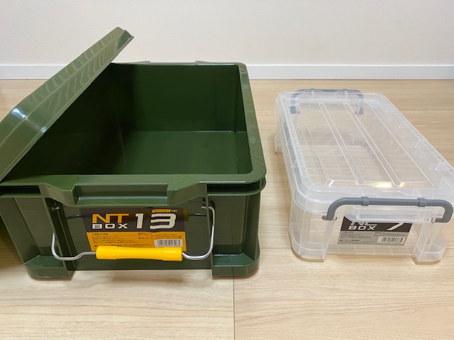 どちらも、ホームセンターにあったコンテナボックス(アステージNTボックス)。