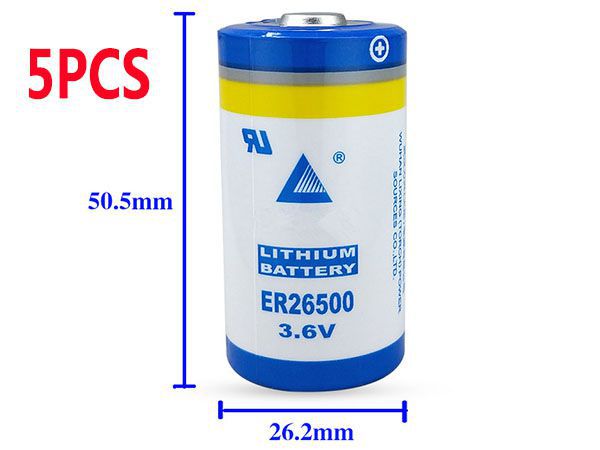 LISUN ER26500バッテリー9000mAh 3.6V LISUN ER26500 C Size 3.6V 9000mAh LS26500 High Energy Li-SOCl2 5PCS