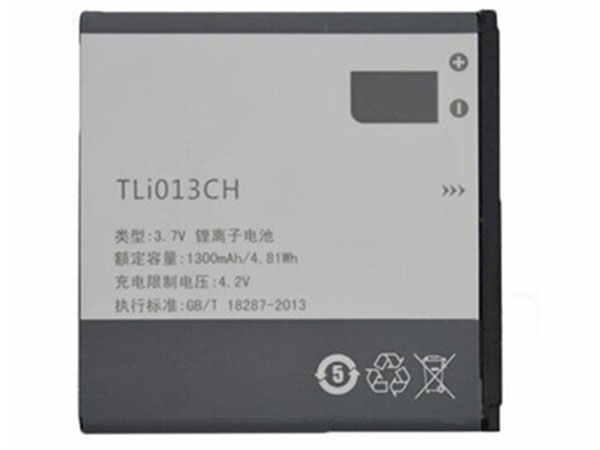 ALCATEL用携帯電話の電池パック、型番:TLI013CH、交換可能部品番号:TLI013CH、セルタイプ:Li-ion、該当機種 :ALCATEL携帯電話 シリーズ。