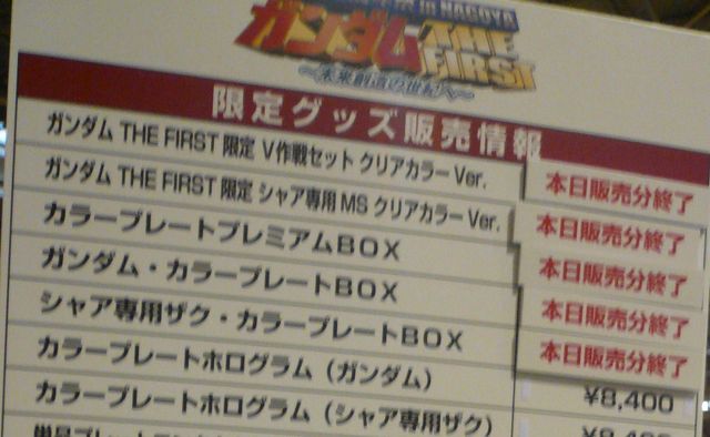 横目で見ながら殺意が湧いたのは私だけでは無かったと思います。ガンプラは早々に売り切れて後々通販用のチラシが配ってました、私はガンプラには