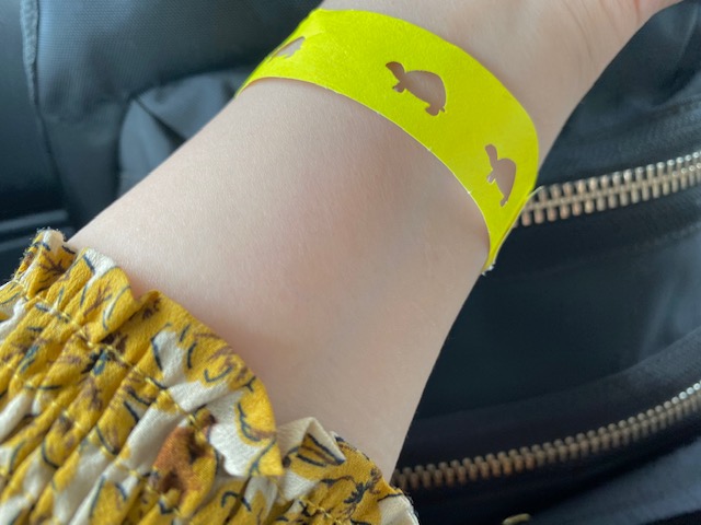 受付で、コロナ対策のチェック後にもらうリストバンド。カメが可愛すぎます〜!
