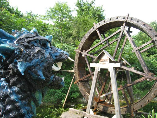 加子母村の道の駅です。すごく長い建物です。裏に水車があります。