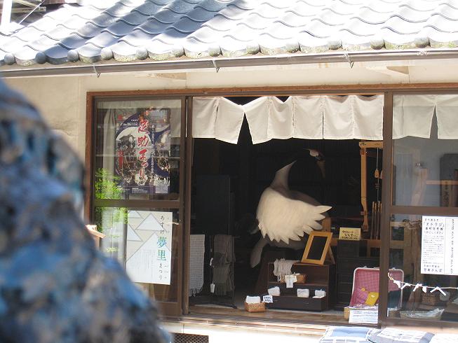 足助の町をいくオードウ。鶴が戸を全開で堂々とはたをおっています。鶴の勇気に感銘したオードウは・・・つづく。