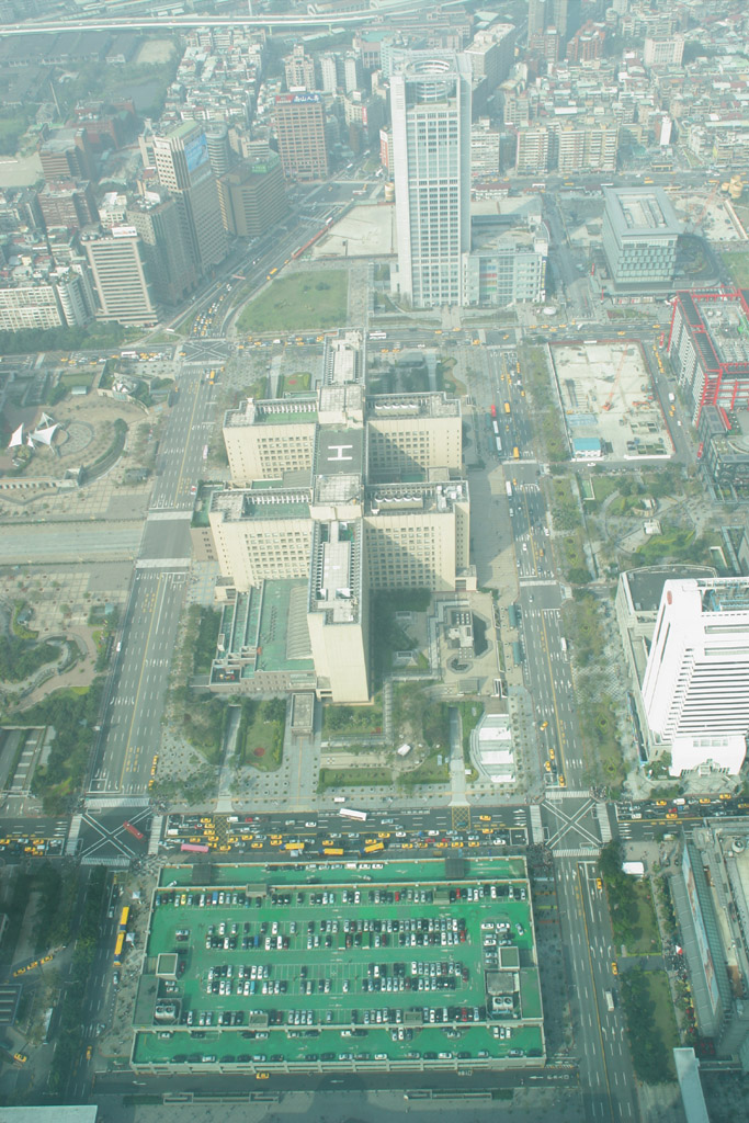 このビルの新技術はエレベーターだけではありません。金の玉?(写真右)がハイテクなのです。台湾は地震も多いが、台風がすごいのです。日本に来る台風なんぞものの数に入らず、風速60mUPが来ても普通?といった感じです。その暴風に対応するために金の玉があるのです。詳しくは以下に・・。