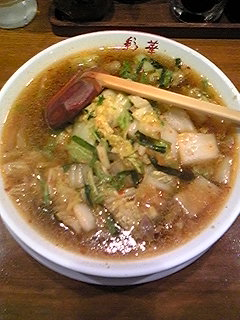 醤油ベースのにんにく風味で上には白菜の炒めが