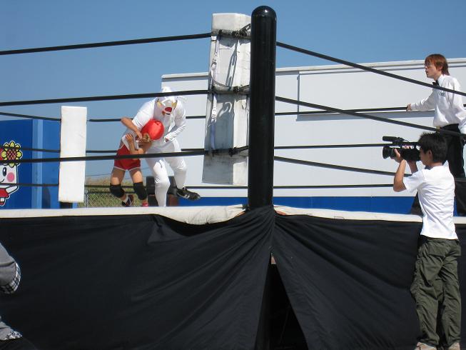 まずは世界最年少プロレスラーのミスター6号の試合です。小学2年とは思えない動きで勝利しました。その後なんと・・・(続く)