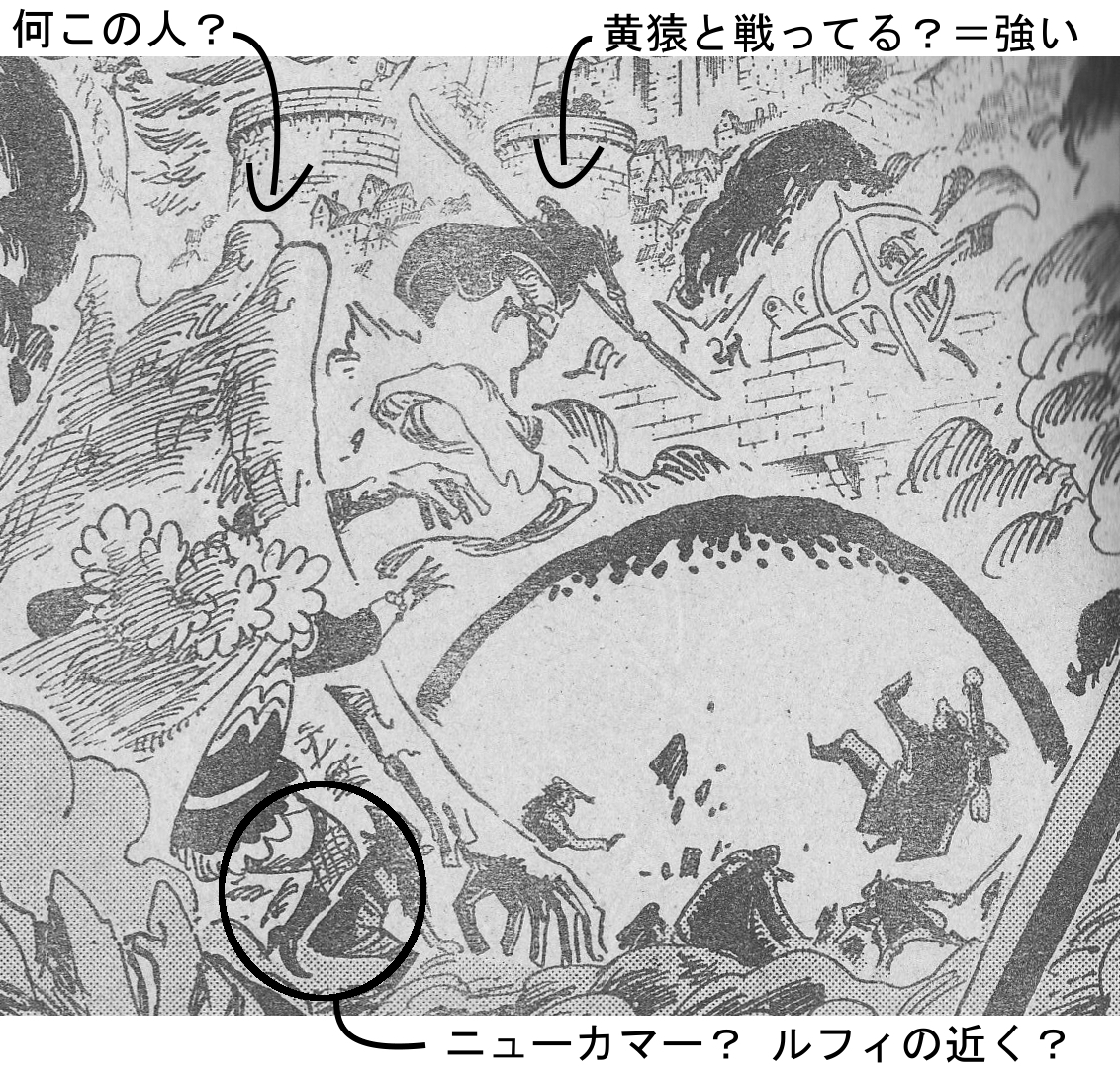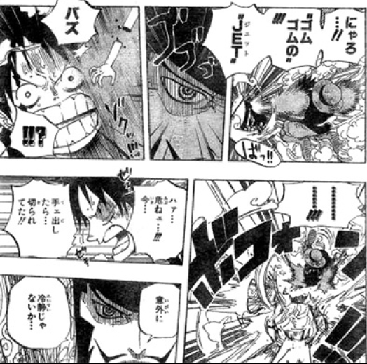追い討ちをかけるミホークの黒刀を すばやくかわしたところへ、ニューカマー二人がミホークに挑みますが一瞬で斬られてしまいます!ゴムゴムのJETバズーカを放とうとしたルフィが、手を出したら斬られると予測し攻撃を引っ込めました!ルフィの戦闘能力のレベルが上がり、自然と覇王色の覇気による心綱を使いこなし始めたのでしょうか?それとも心綱とは関係ないのでしょうか??