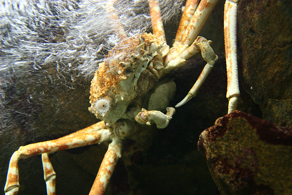 カニです。足が一本ありません。水槽のエアレーションがあり、じっとしているカニが