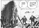 足にはめられた海楼石の枷から逃れるべく 自らの足を切断 「足はいらねェ」と言い放ち見事に脱獄に成功する