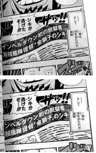 シキが脱獄したシーン、新聞の見出し。