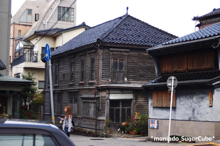なんか外壁が木製の凄い古い家屋を発見したのでシャッターを切った。金沢のお嬢さん(たぶん)が一緒に写り込んでくれた。