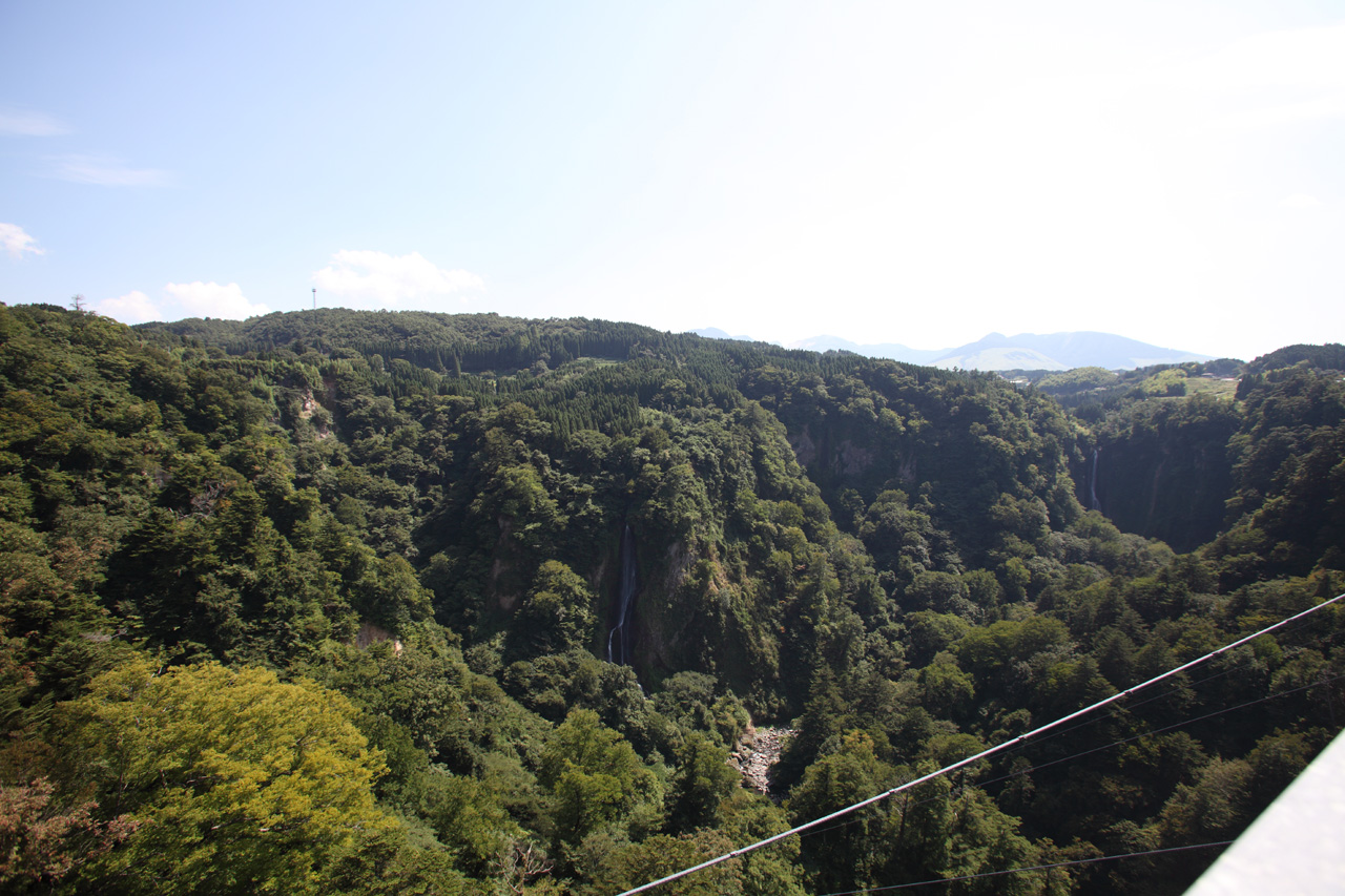 の撮影は注意されたりします。なので、高度感がある写真として紹介。滝が2つありますが