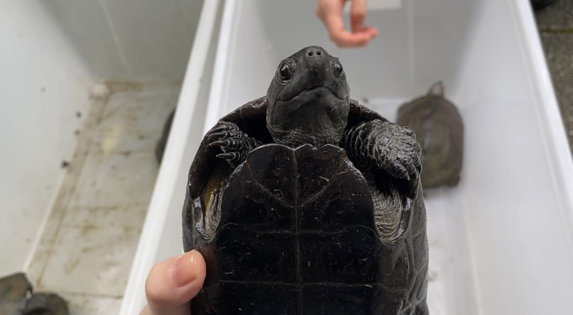 今回捕獲したクサガメのオス。とっても可愛いです!