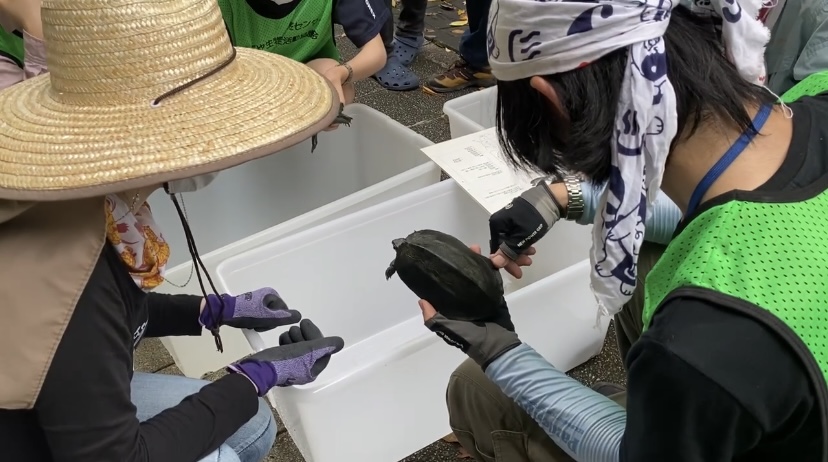 クサガメは江戸時代後期に日本へ輸入された「外来種」とする見方が増えていますが、現在の名古屋市では「在来種」として扱われています。(外来種として駆除した後から、「実は在来種でした」となった場合に取り返しがつかないためだそうです。命は大切に!)