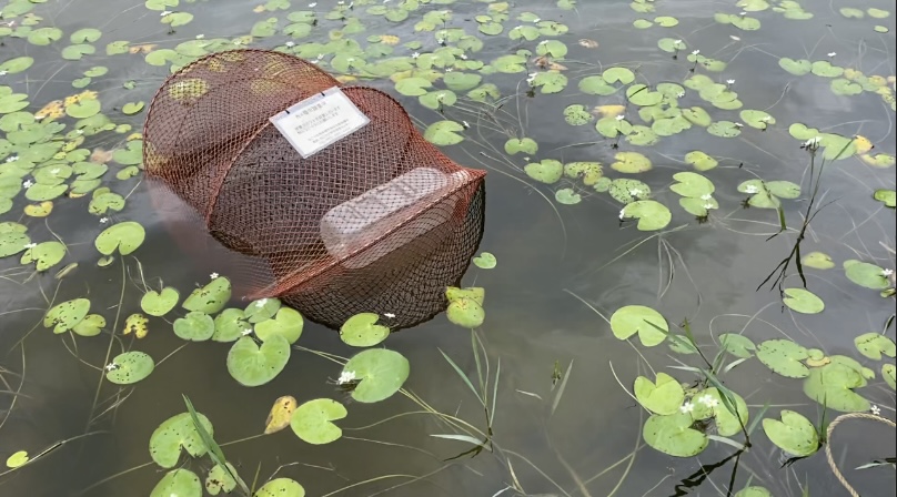亀の調査用の捕獲罠を、前日に数カ所に分けて設置。それを順番に引き上げます!