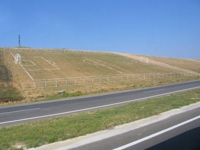 土地柄 岩場が多いためここにしかサッカーコートの広さの平地がなかったのだろう