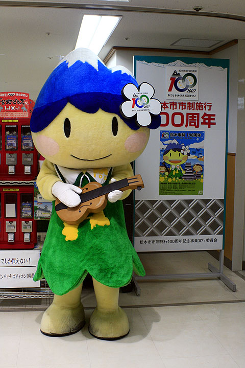 2007年から2008年3月まで開催された松本市制100年記念事業のマスコットキャラクターとして誕生。期間中はイベントや催事で大活躍。