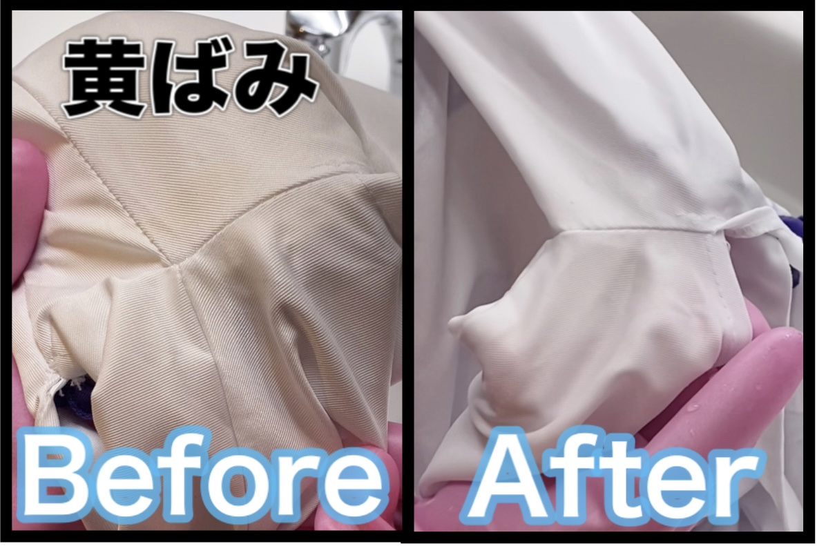 右のAfter画像は、セスキにつけ置きした1時間後。黄ばみがこんなにも取れています!