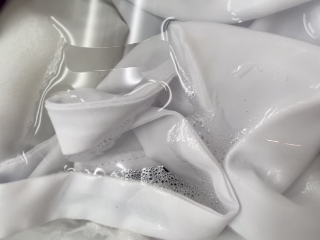 人肌の湯を、衣装が隠れる深さまでダバーッと入れ、優しく手揉み洗い。セスキが混ざった