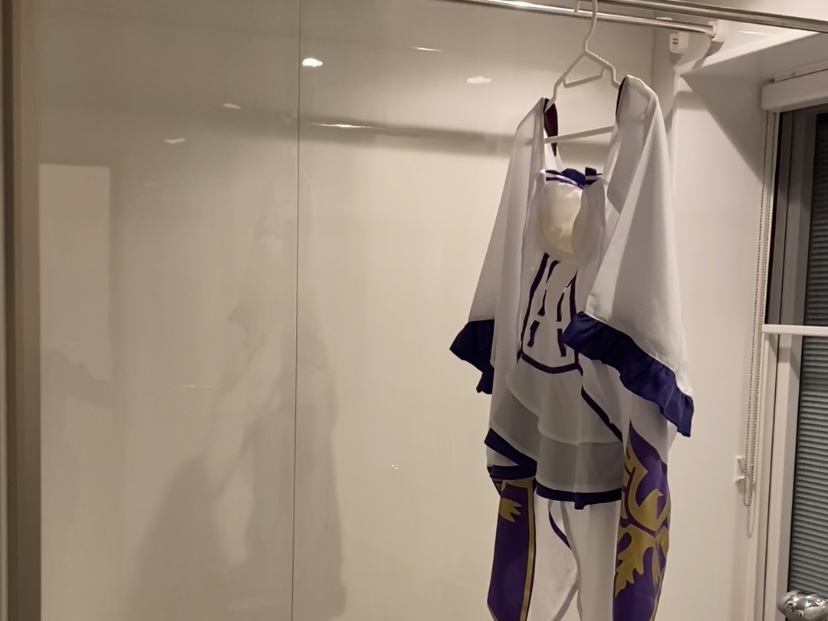 衣装をしっかり水で濯ぎ、脱水して陰干しするだけ。脱水は、ネットに入れて洗濯機で脱水しています。詳細は、次回のネタでご紹介します。