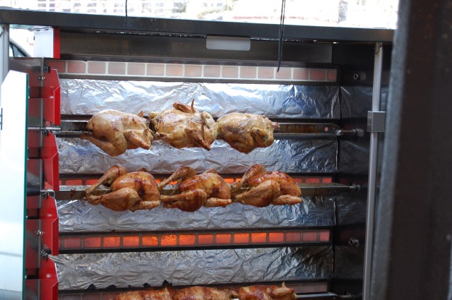 肉屋で皮をはいで丸ごと一羽で売られるウサギ肉は圧巻です。