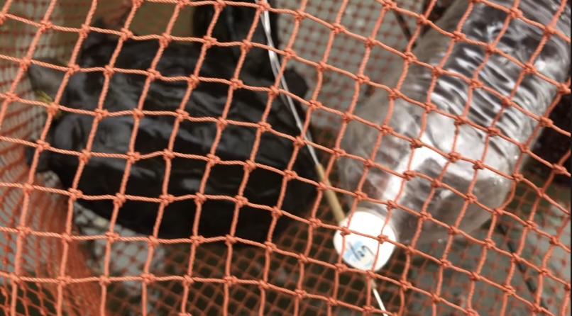 ずっしり重い罠の中に、既視感ある色と柄。・・・え!? 私の引き上げた罠に、ゴンちゃんがいて大変驚きました(笑)