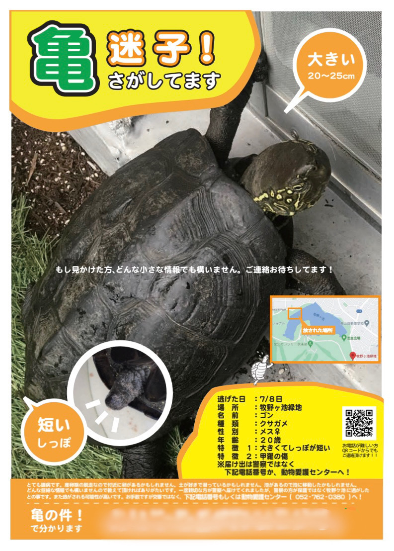 迷子亀のゴンちゃん事件がありました。